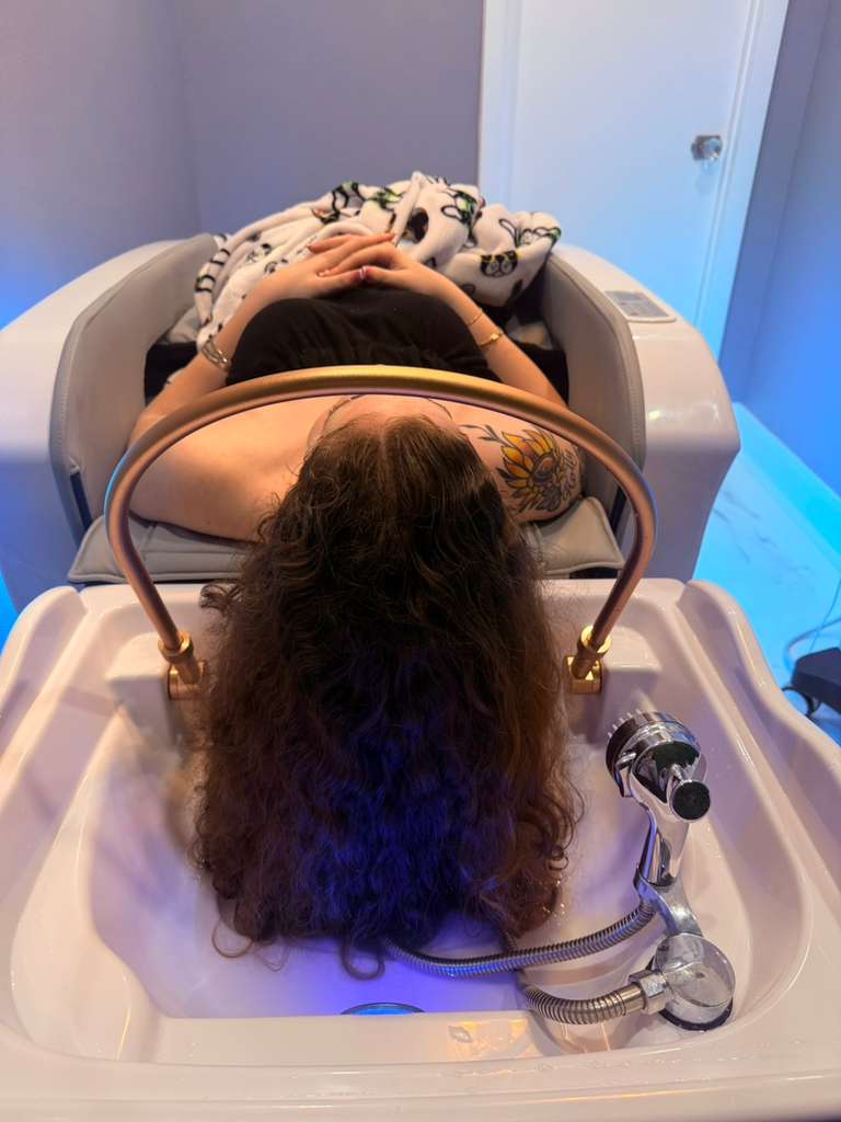 Our signature Japanese Head Spa treatments combine deep scalp cleansing, therapeutic massage, and soothing water therapy to promote scalp health, relaxation, and overall well-being. It’s a unique experience designed to relieve stress while improving the condition of your hair and scalp.